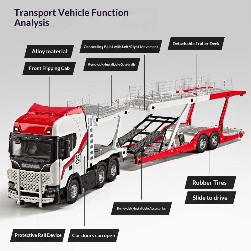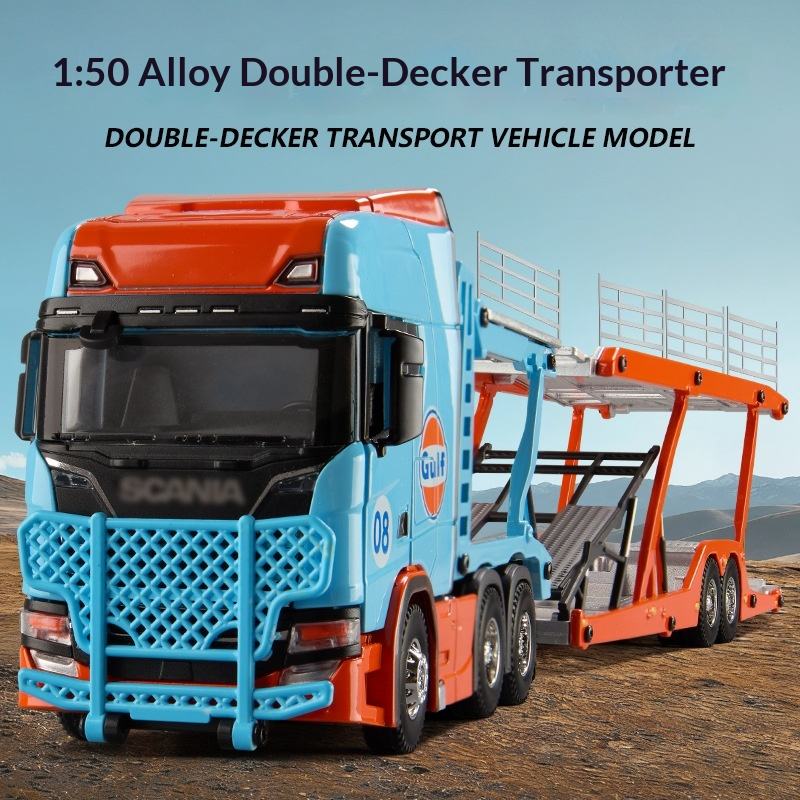 Modèle réduit de transporteur à double étage en métal moulé sous pression à l'échelle 1:50, réaliste, avec glissière et contrôle par inertie, jouet unisexe, cadeau pour la Journée des enfants