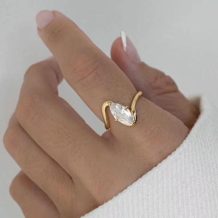 1.51CT Fancy Marquise Cut Lab Grown Diamond Proposition Chevalière Bague Courbe Band14K Gold Fine Engagement Party for Bride wedding Gift