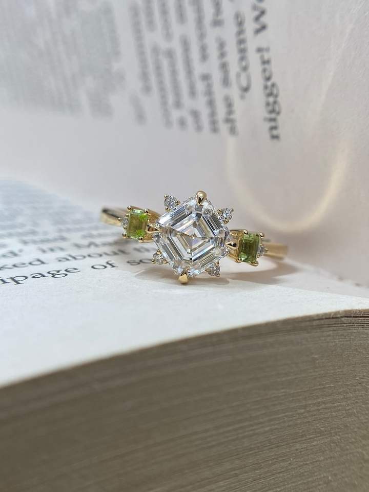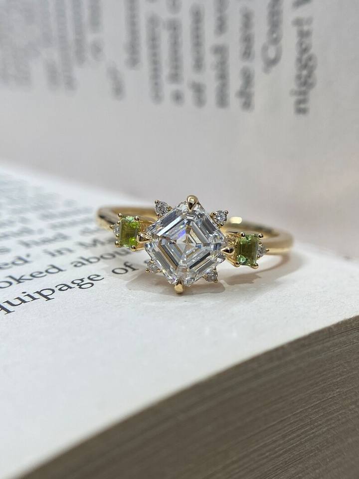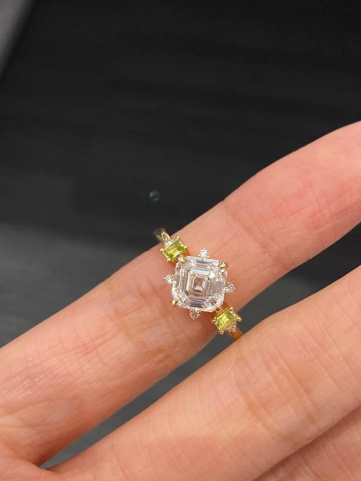 1.51CT VS1 Asscher Cut Lab Grown Diamond Trois Stone Ring 14K Solid Gold Fine Wedding Stunning Proposal Gift for Girlfriends