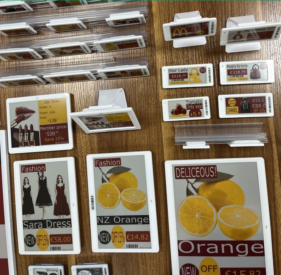 Étiquettes de prix numériques ESL (Electronic Shelf Label) de 1,54 pouce, 2,13 pouces, 2,66 pouces, 2,9 pouces, 3,5 pouces, 4,2 pouces, 5,83 pouces et 7,5 pouces pour supermarché