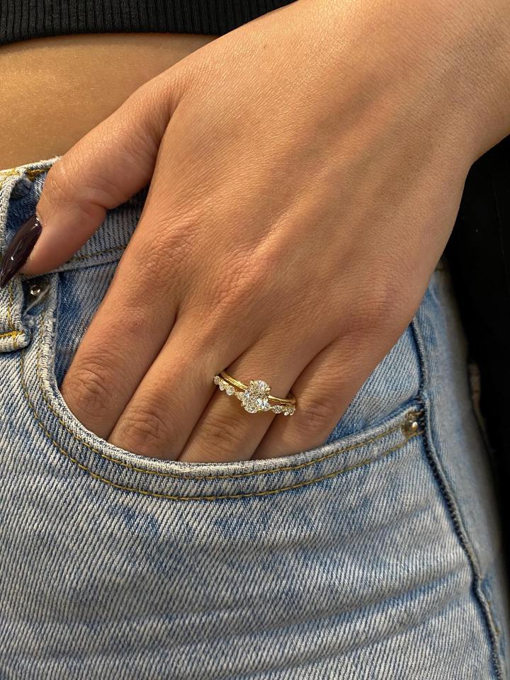 Bague de fiançailles solitaire avec diamant de laboratoire ovale de 1,55 carat, alliance assortie ronde et marquise, or 14 carats, IGI