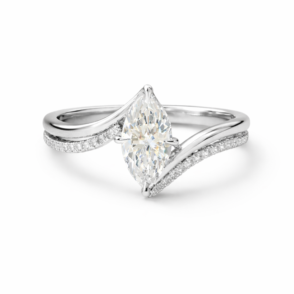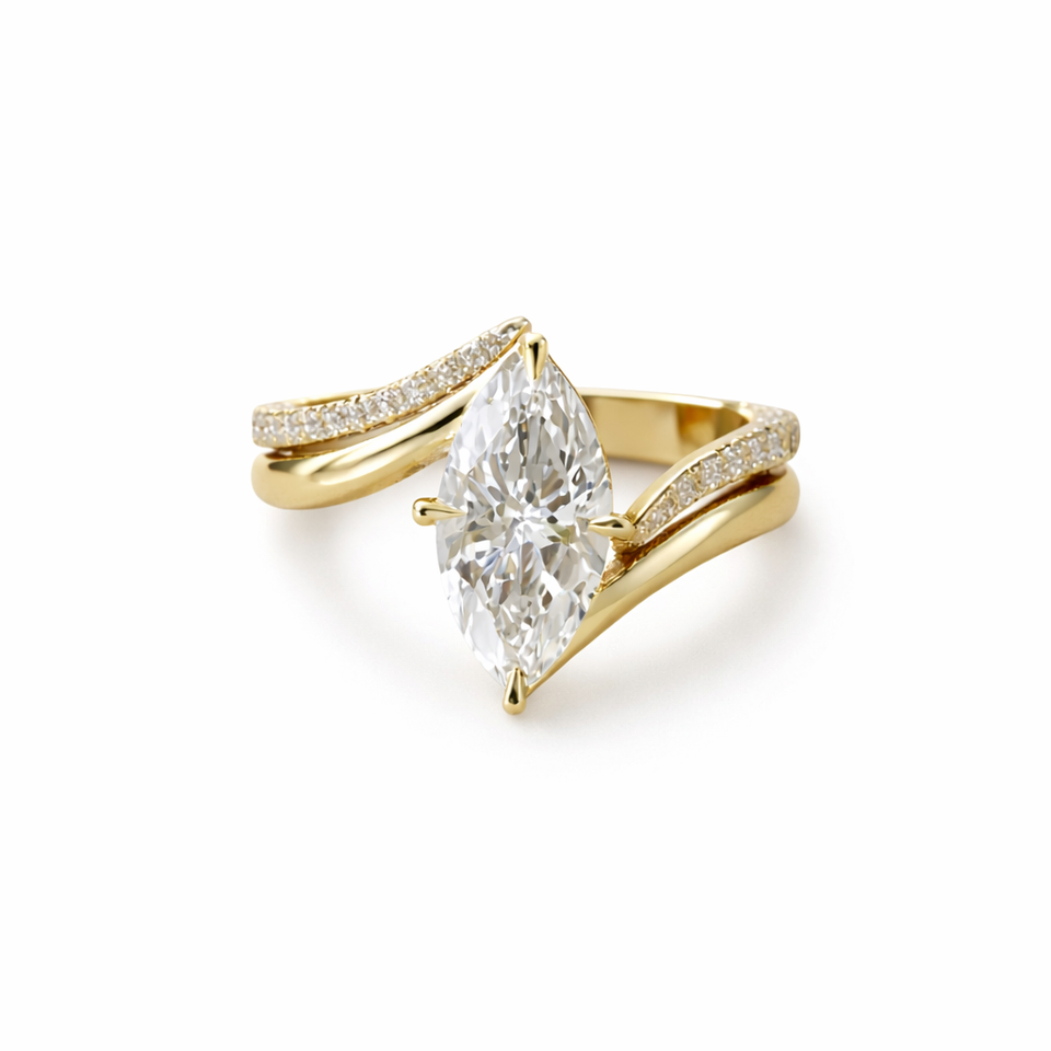 Bague Rapture Marquise en Or 14K avec Bande Pavée Ondulée