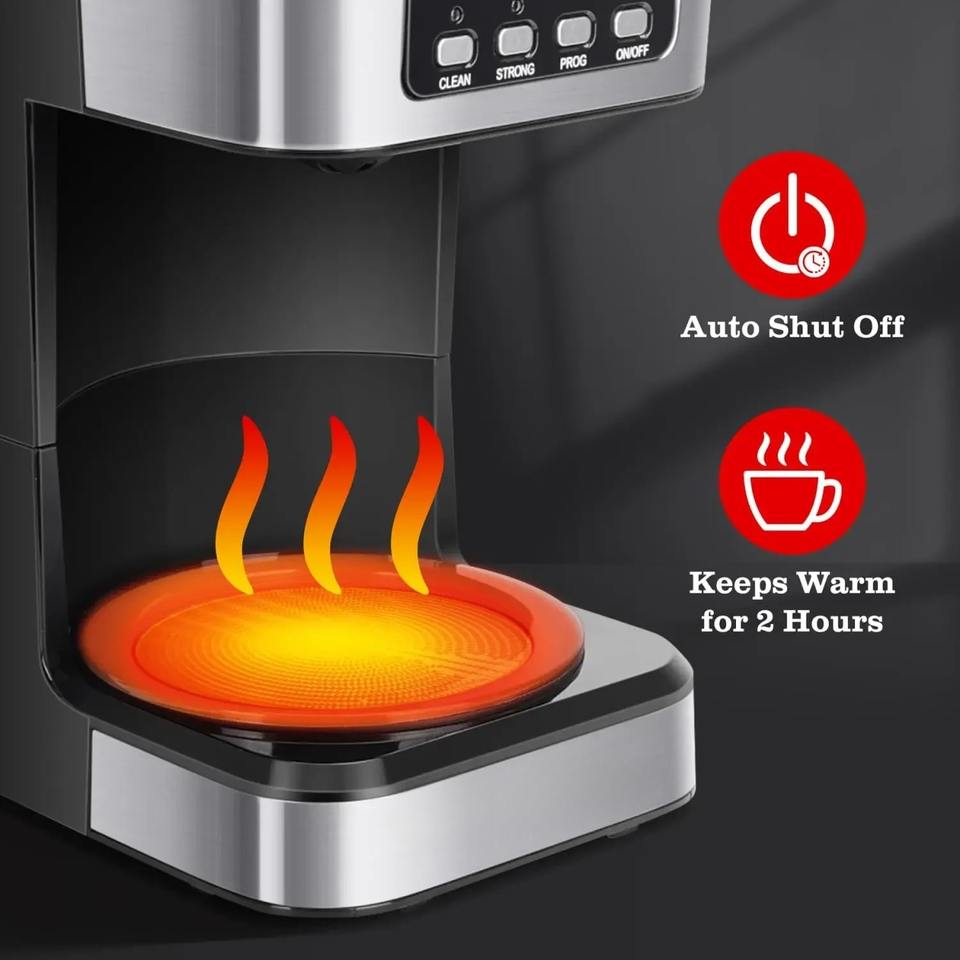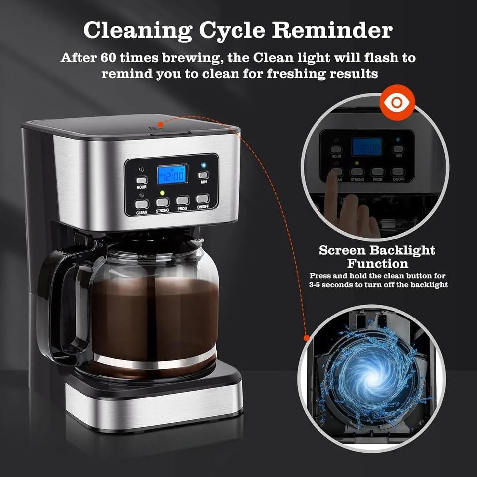 Machine à café filtre 1,5 L pour la maison et le bureau, petite cafetière domestique avec fonction de programmation 24h/24, isolation thermique et fonction de nettoyage