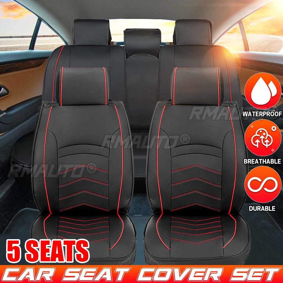 Ensemble de housses de siège auto en cuir, 1/5 pièces, avec coussin en lin, universel, compatible avec la plupart des berlines, SUV et petits camions