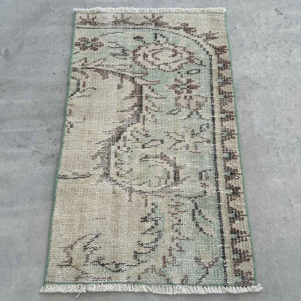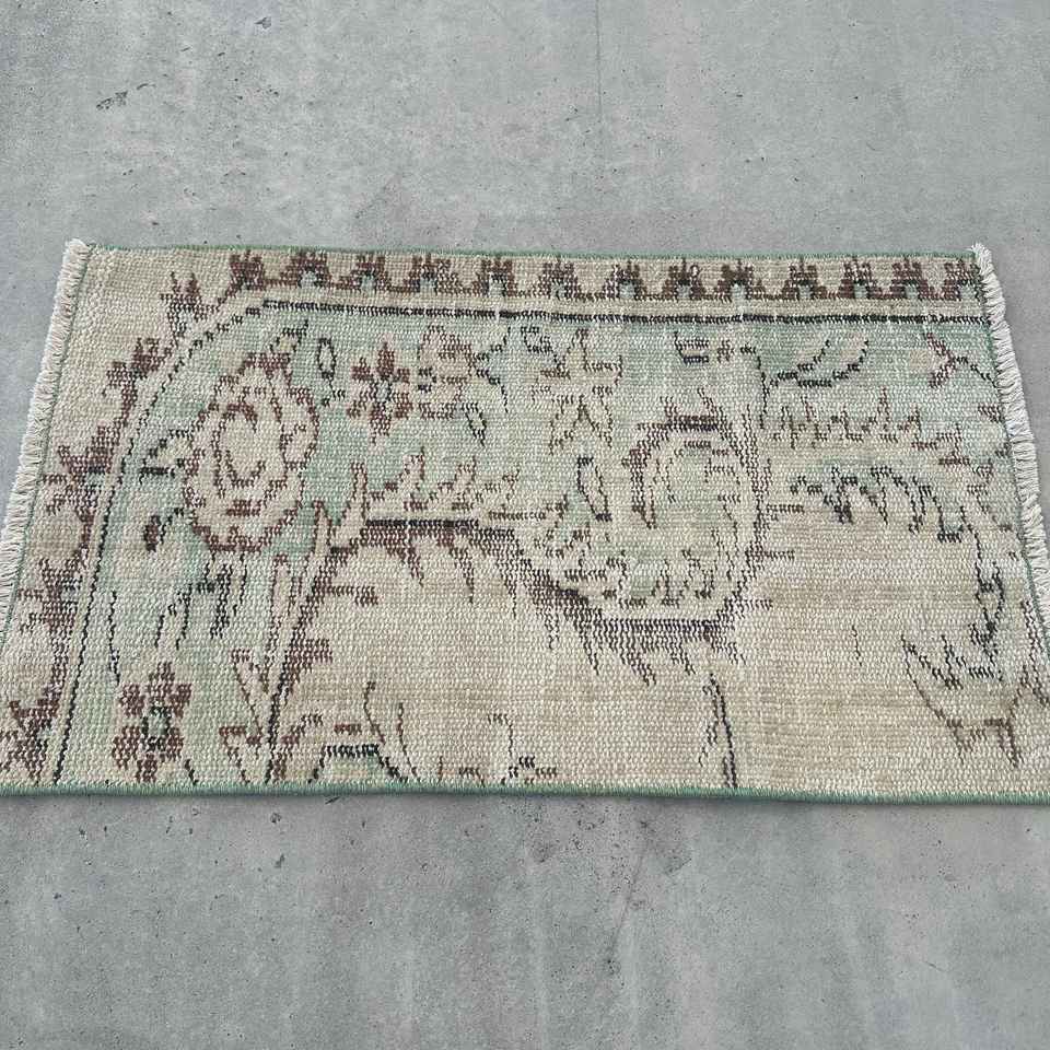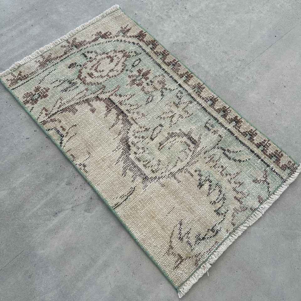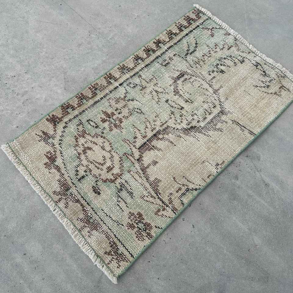 Tapis de 1,5 x 2,6 pieds, tapis turc vintage, tapis oriental en laine vert-brun