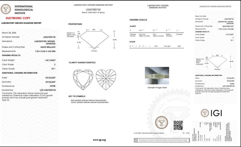 1.60ct Heart Cut Lab-Grown Diamond IGI Certified E Color VS1 Clarity Lab-Stone