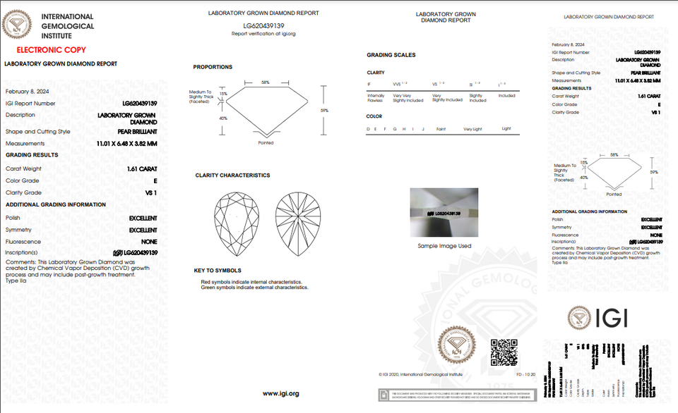 1.61 ct Poire Cut Lab-Grown Diamond IGI Certified E Color VS1 Clarity Lab-Stone