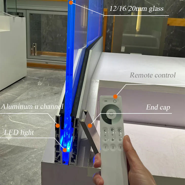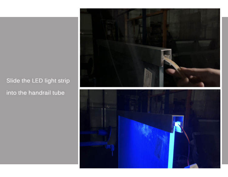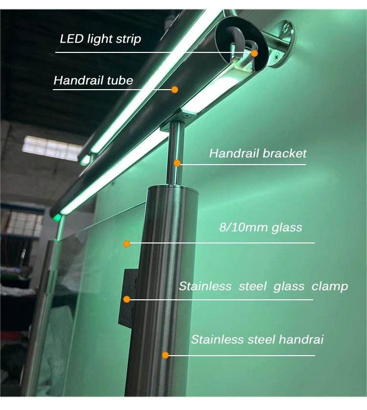 1.6KN/m test de poussée main courante tube LED garde-corps mur côté monté terrasse clôture verre canal profil verre barrière verre parapet