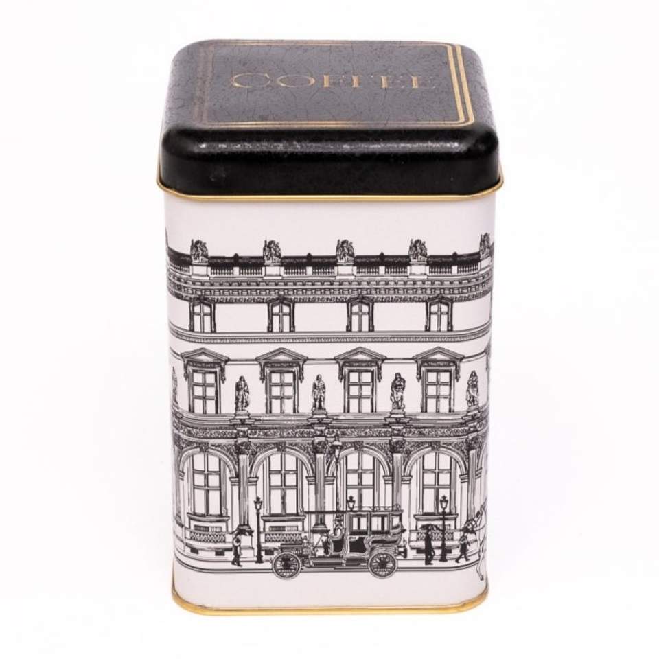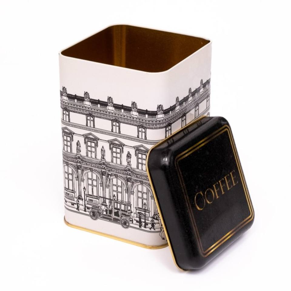 1.6L Vintage Cityscapes Illustration 105x105x160 mm Square Metal Storage Tin for Coffee Box tin can