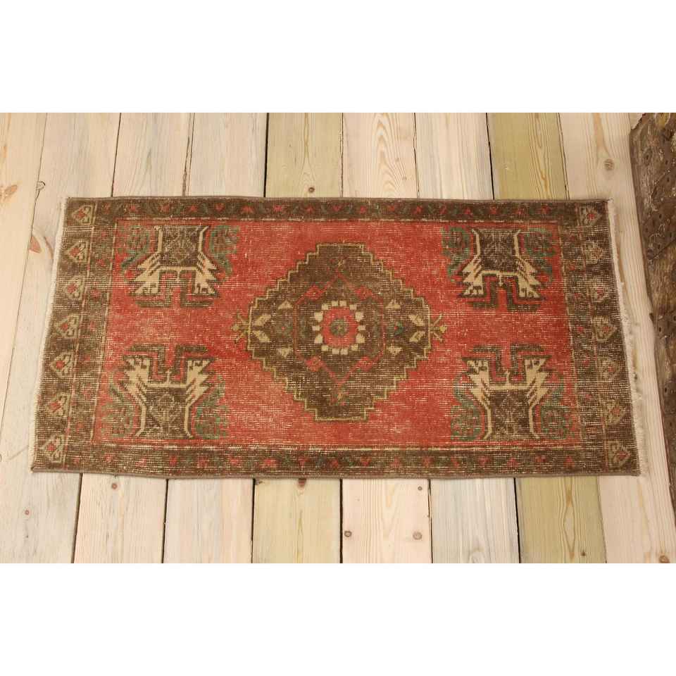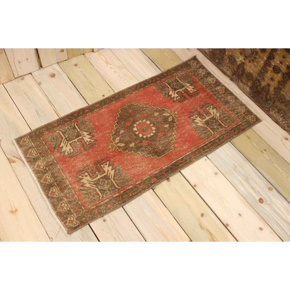 1.6x3.3 ft Rug, Turkish Vintage Small Rug, Red Wool Rug