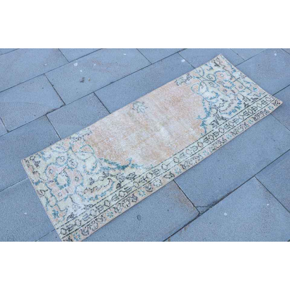 Tapis turc 1,6 x 4,4 pieds, petit tapis vintage, tapis oriental marron bleu
