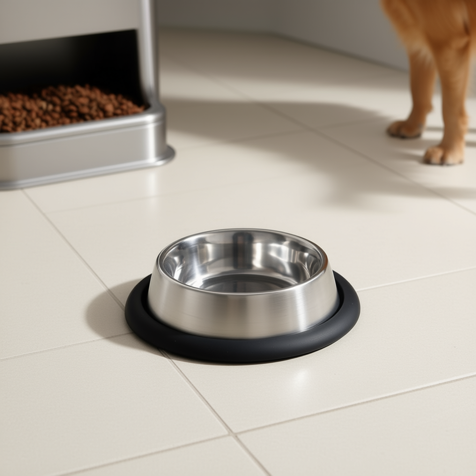 Mangeoire pour animaux de compagnie en acier inoxydable de 1,75 L avec anneau en caoutchouc, diamètre de 20 cm, design de bol moderne