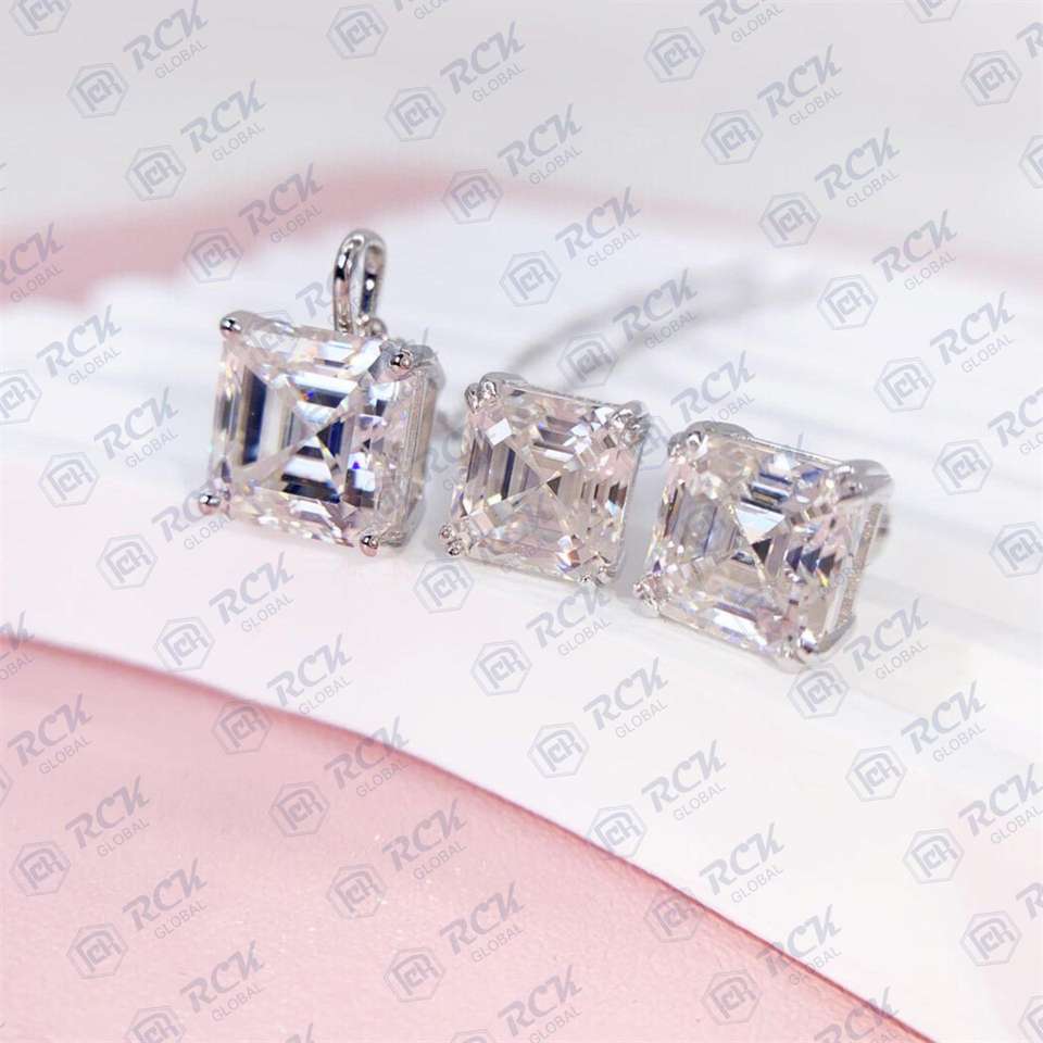 1.75 TCW Asscher coupe ensemble de bijoux Moissanite pendentif ensemble pour femmes/Minimal délicat diamant anniversaire cadeau pendentif collier
