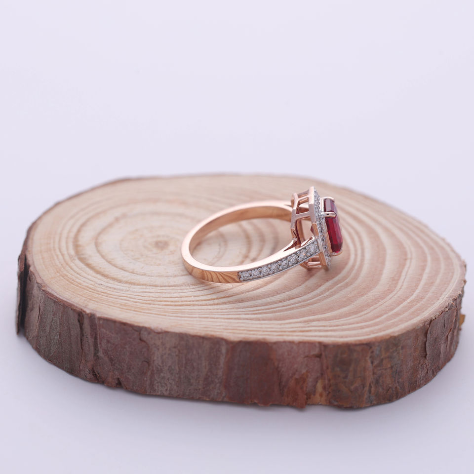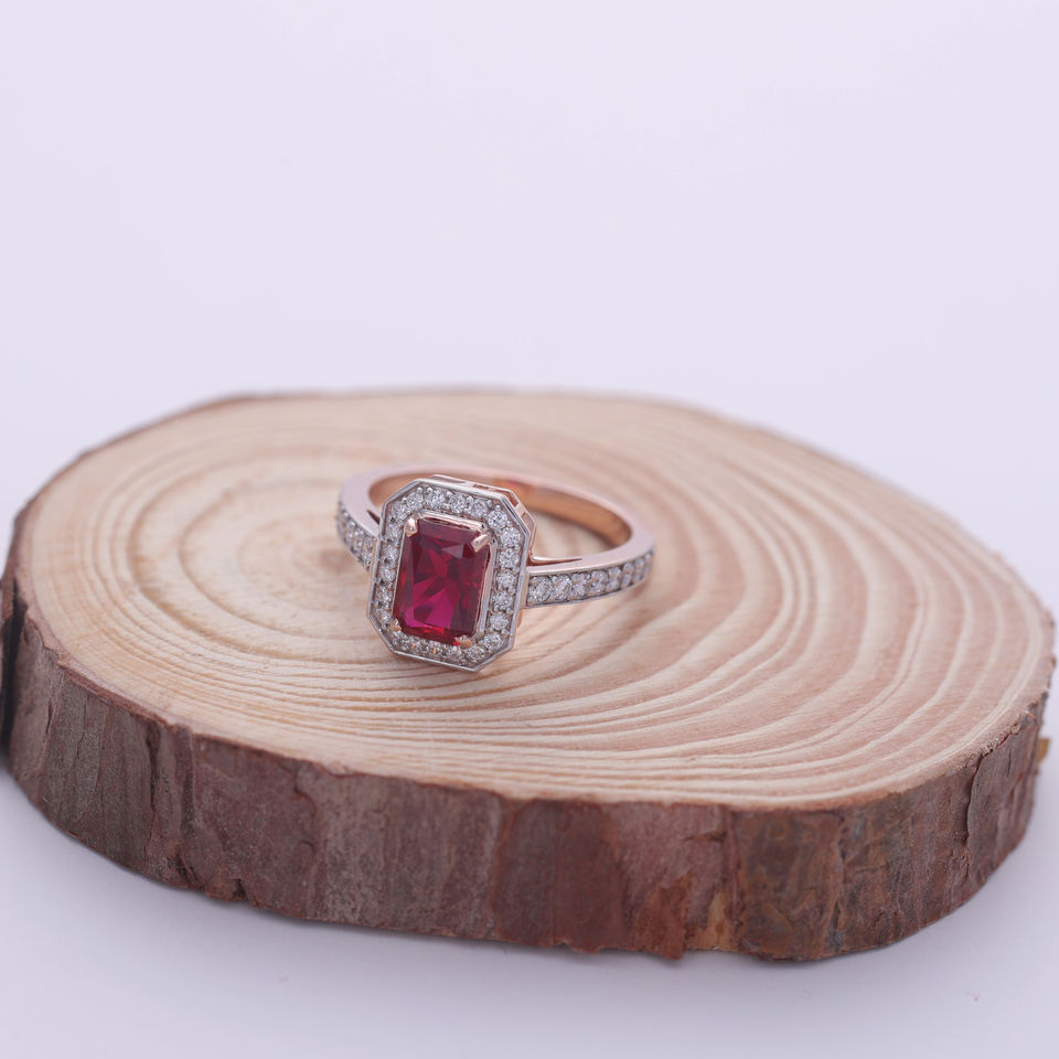 Bague de fiançailles en argent sterling 925 massif avec pierre précieuse rouge de laboratoire taille émeraude de 1,78 ct et halo de diamants ronds