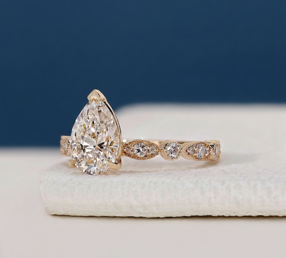 Nom du produit:Bague de fiançailles avec diamant de laboratoire taille poire