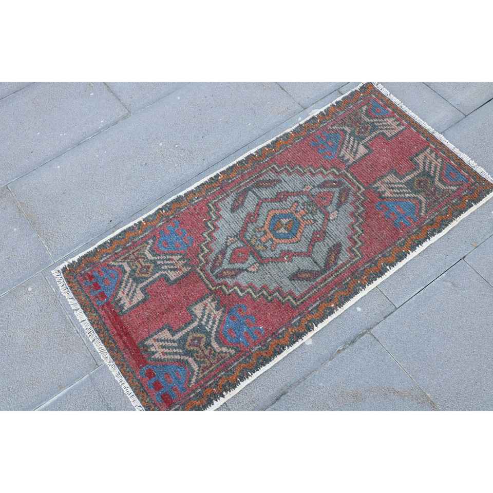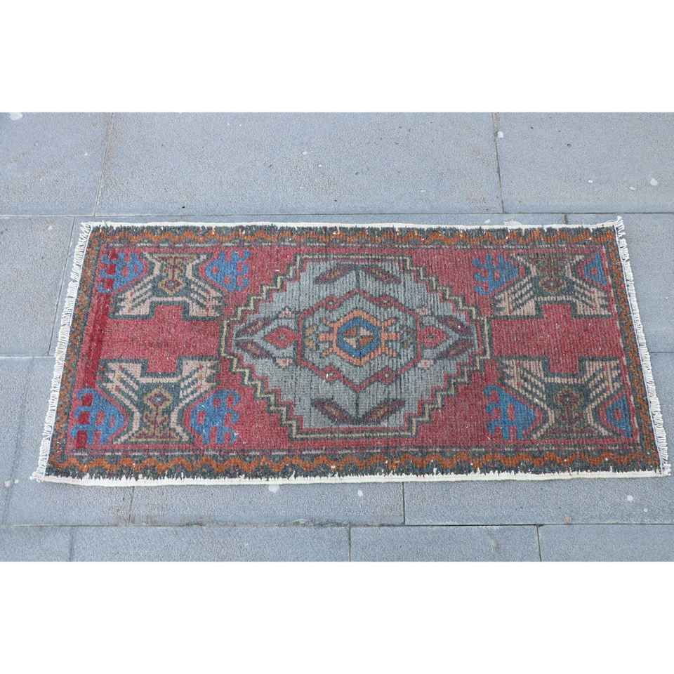 Tapis de 1,7 x 3,3 pieds, tapis turc vintage, tapis oriental en laine rouge