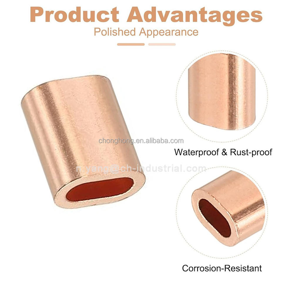 Manchons de sertissage ovales en cuivre de 3 mm pour câbles de 1/8 po, embouts de câble en cuivre, manchons de sertissage pour câbles de 3 mm