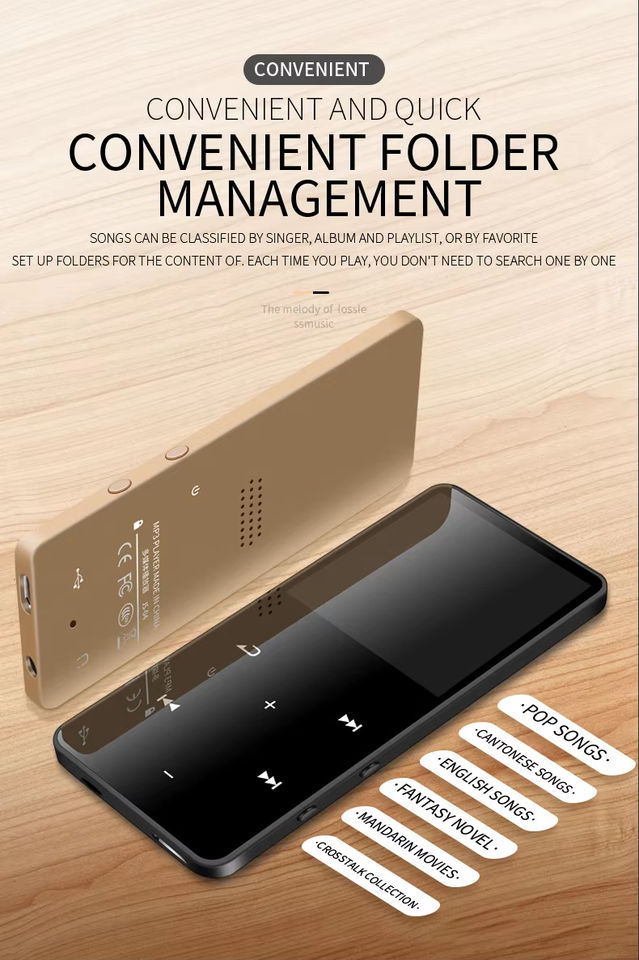 Lecteur MP3 MP4 mini avec écran tactile de 1,8 pouce, prend en charge la carte TF, USB 2.0, format audio WAV