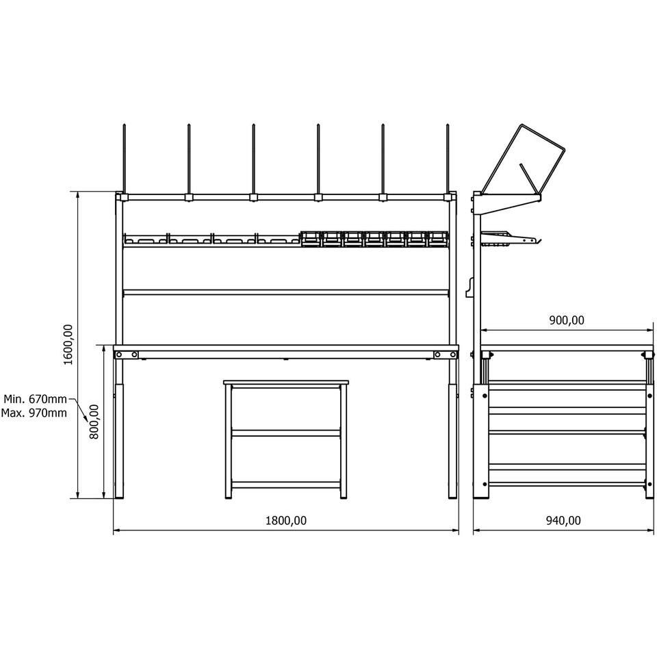 Bureau d'emballage de 1,8 m (L1500xP940mm) IE.25.20.18.02 Banc de travail en métal Assemblage Hauteur personnalisable Réglable,