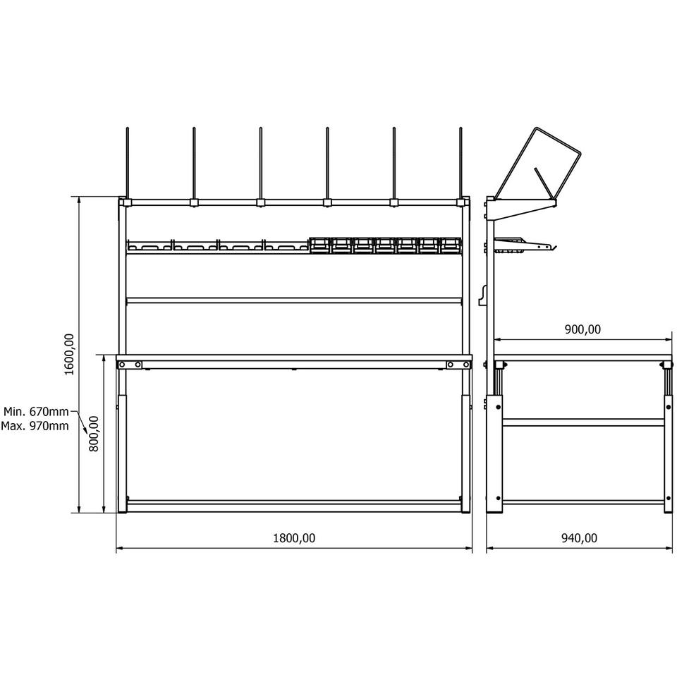 Bureau d'emballage de 1,8 m (L1500xP940mm) IE.25.20.18.09 Banc de travail en métal, hauteur personnalisable, tiroirs