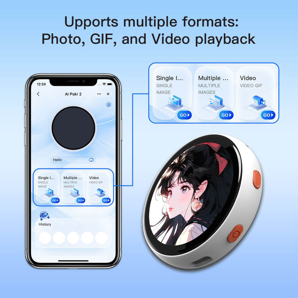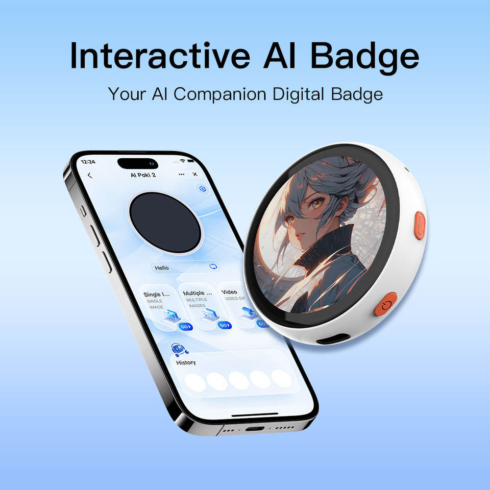 Badge numérique électronique avec écran tactile HD de 1,8 pouce, transfert de photos et de vidéos GIF, badge anime, badge WIFI