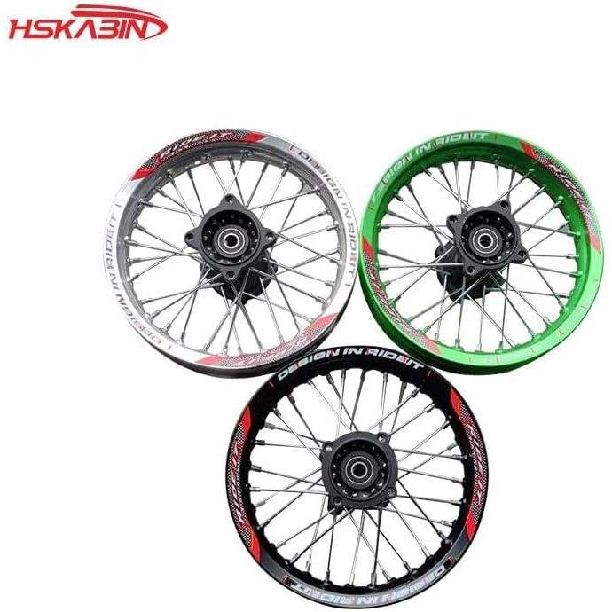 Moyeu de roue arrière de moto tout-terrain noir 1,85x12 pouces avec autocollants, en alliage d'aluminium, frein à disque, accessoires VTT, indice de charge 55
