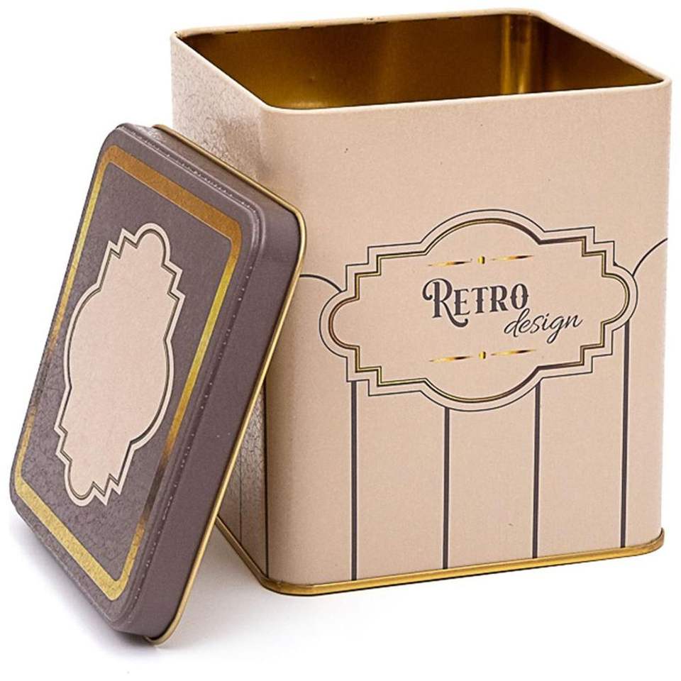 1.8L Rétro Slip Couvercle Carré Boîte En Fer Blanc 120x120x137mm Alimentaire Boisson Qualité Recyclable Fer Blanc Gaufré Plastique Papier Doublure