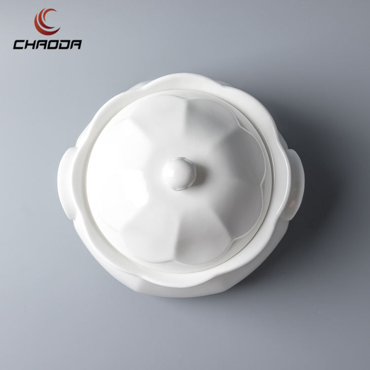 Soupière en céramique de 1,8 L avec louche, fournisseur de services de table en céramique et porcelaine, bols blancs, service de table, pot à soupe, qualité alimentaire