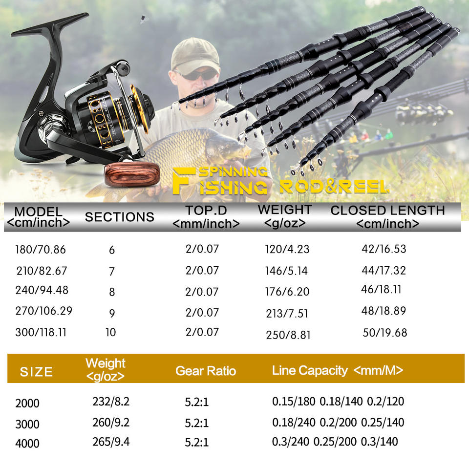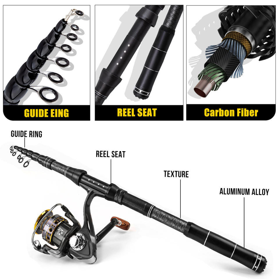 Ensemble Canne à Pêche en Mer à Distance de 1.8M-3M, Canne et Moulinet en Carbone, Kit Complet d'Équipement de Pêche