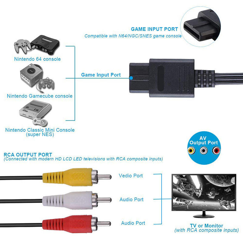 1.8M RCA AV TV Audio pour Nintendo 64 Super Nintend GameCube N64 SNES Game Cube Accessoire