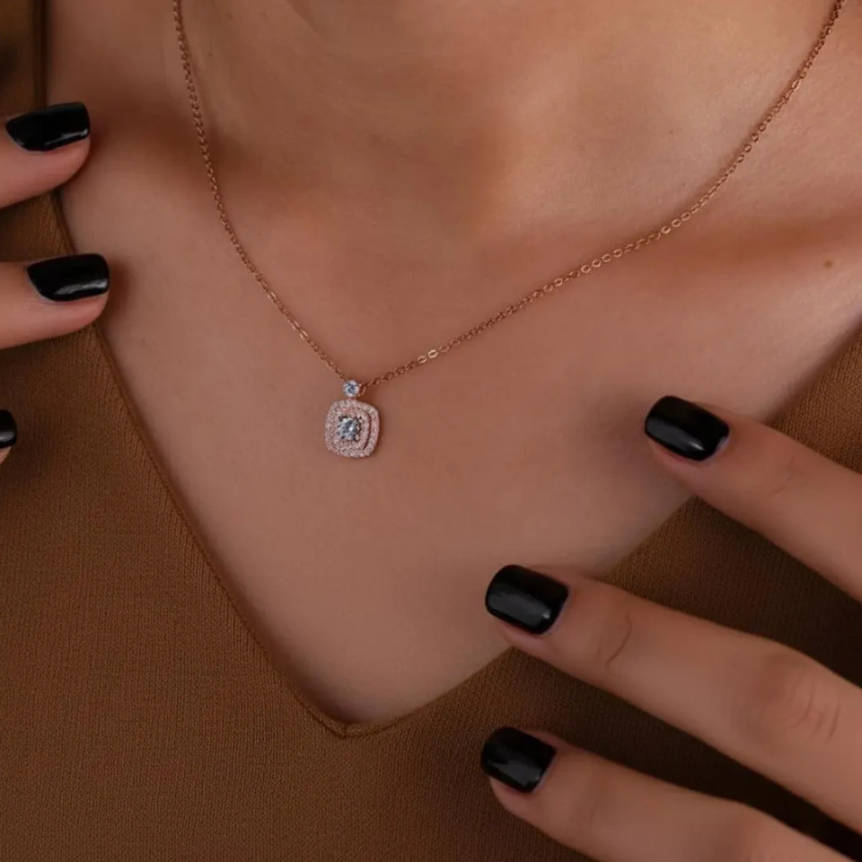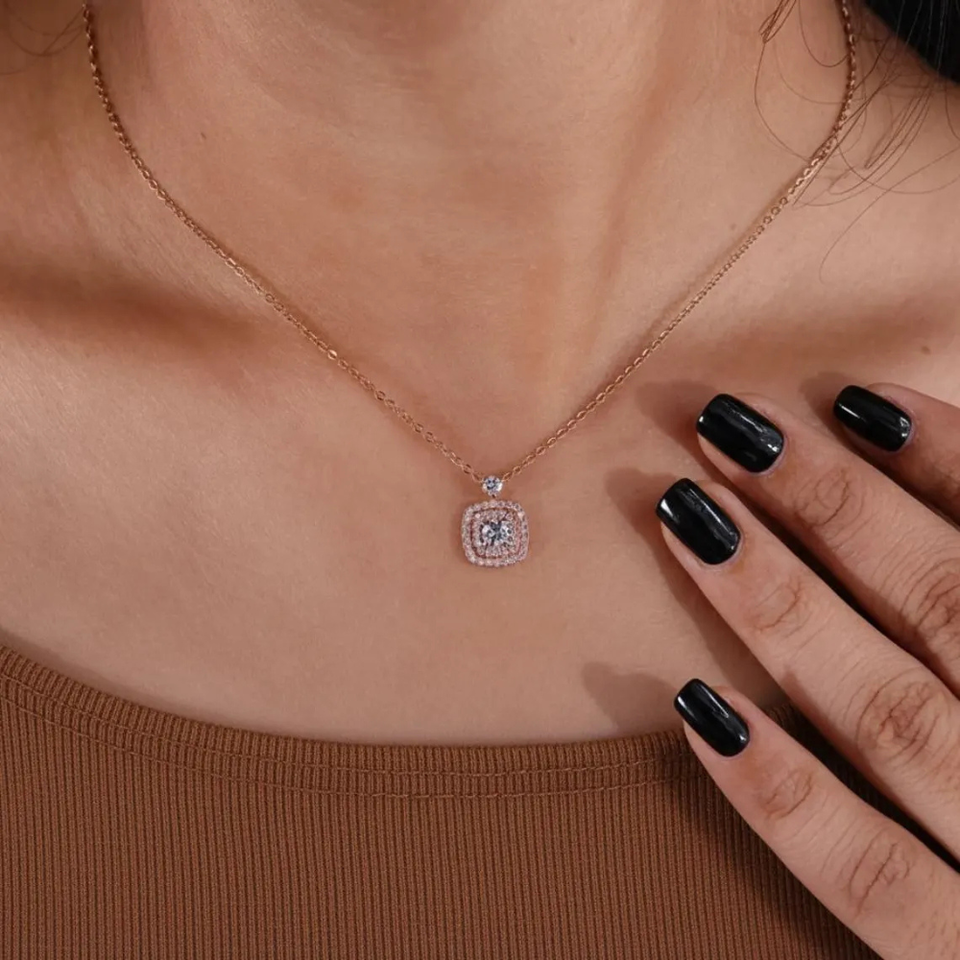 Pendentif solitaire double halo en diamant de laboratoire 1,8 ct, clarté VS, couleur EF, or 14 carats plaqué rhodium, certifié IGI, pour femme