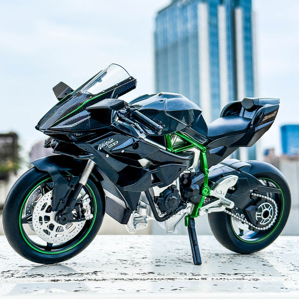 Modèle de moto H2R en métal 1:9 avec fonction de pulvérisation, simulation de son et de lumière de grande moto, jouet