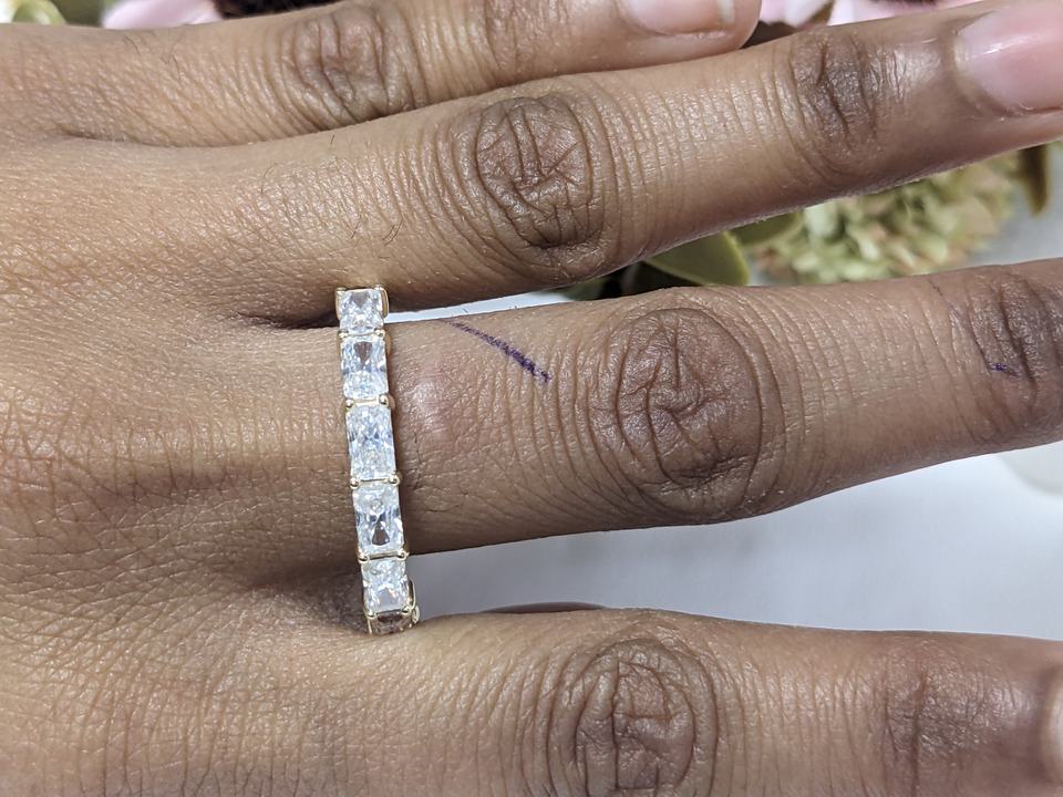Bague de fiançailles et de mariage demi-éternité en or jaune 14 carats avec diamant de laboratoire taille radiant de 1,90 carat, certifié IGI, Lurba Jewels, tendance