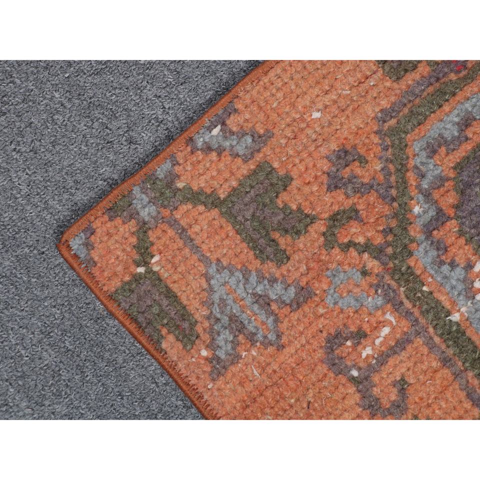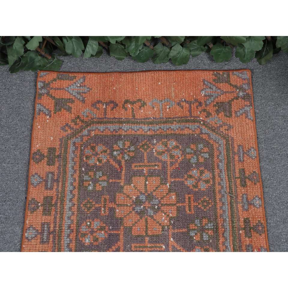 Tapis vintage 1,9 x 2,5 pieds, tapis turc, tapis en laine à imprimé animalier orange