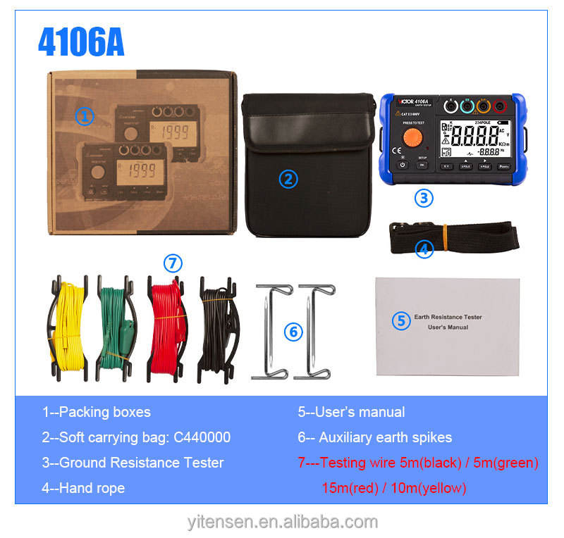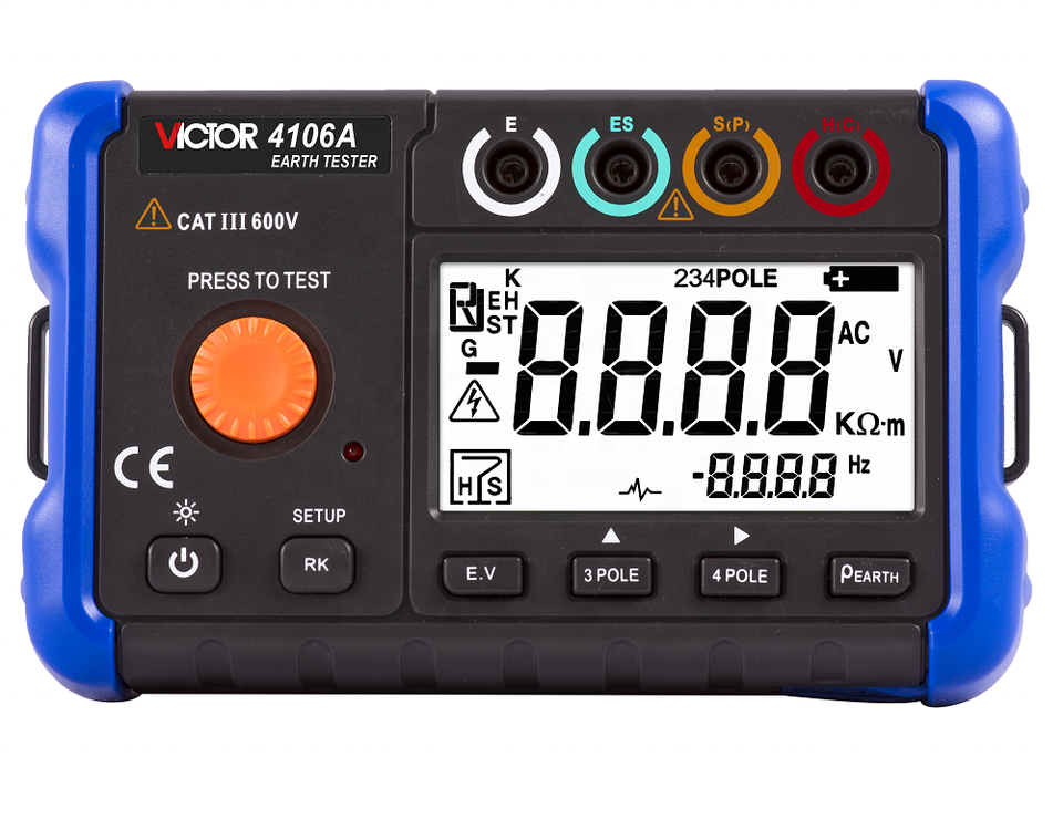 Testeur de résistance à la terre numérique True RMS 1 AC 4106A, mesure par méthode 3 pôles et 4 pôles