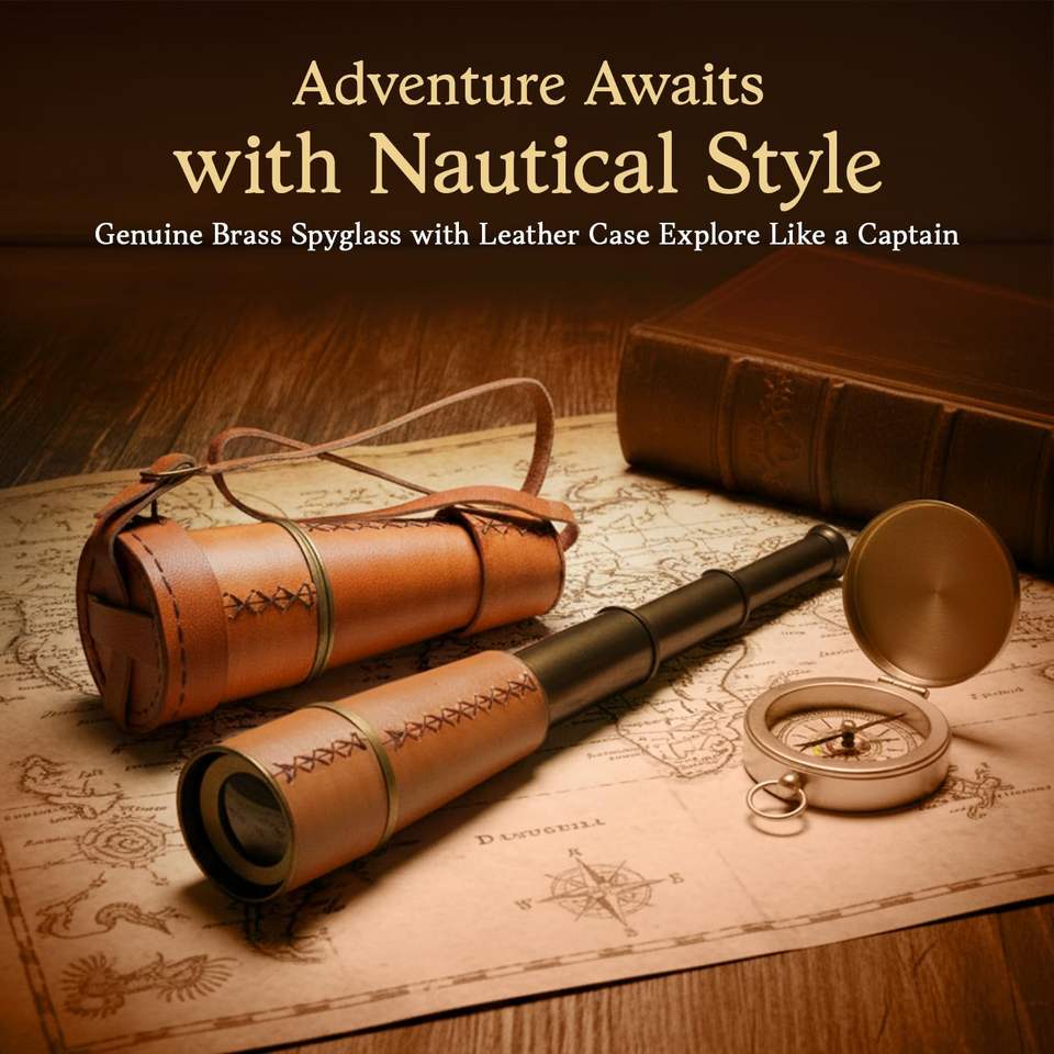 Brass Nautical Telescope Spyglass Leather Wrap | Handcrafted Antique Imitation Design | 3x-5x Magnification | 20-Inch Size |
