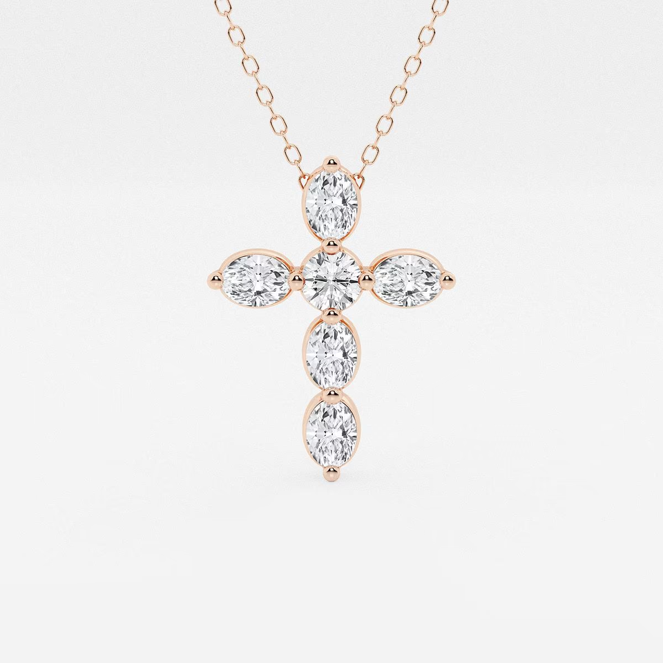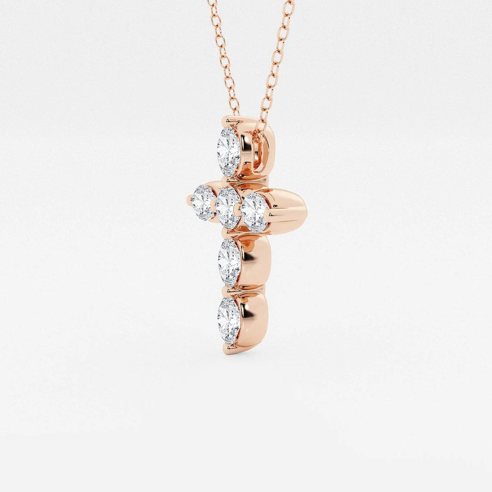 Pendentif Croix Flottante en Diamant de Laboratoire Rond et Oval 1 CTW, Collier Élégant de Foi, Cadeau pour Femme