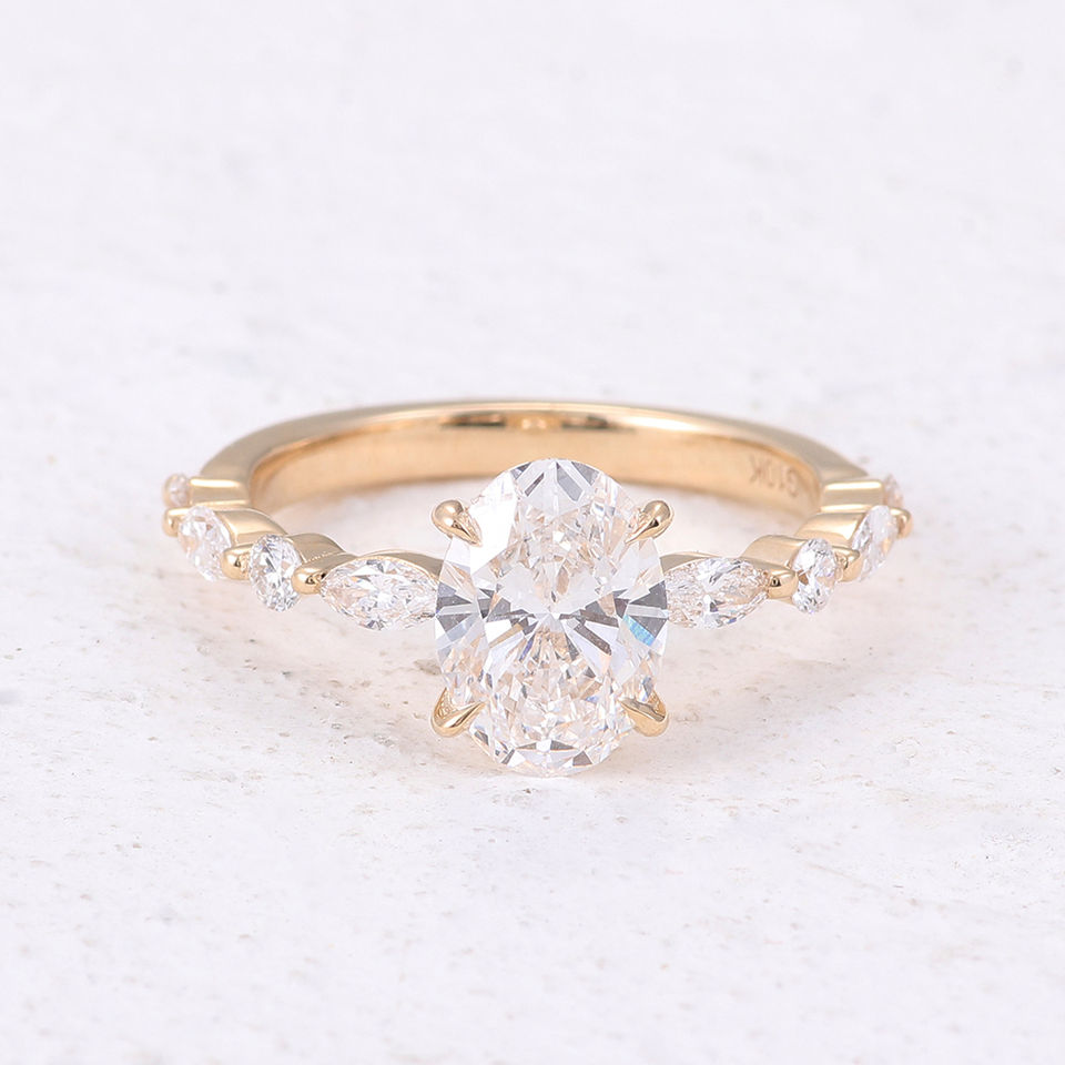 Bague de mariage pour femme en or jaune 10 carats avec diamant ovale DEF/VVS de 1 carat et diamant rond, cadeau de Noël, cadeau d'anniversaire de Noël