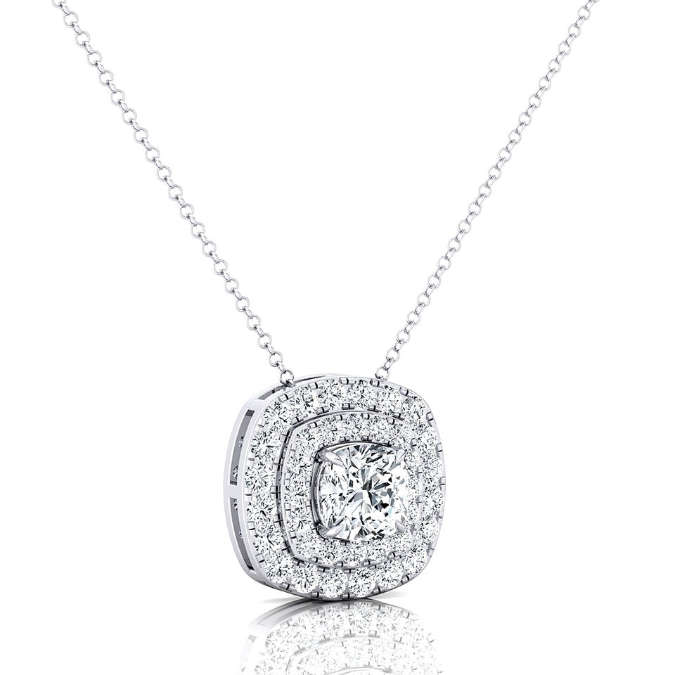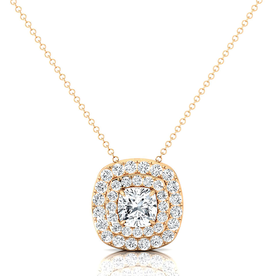 Collier pendentif solitaire en diamant de laboratoire taille coussin 1 carat, or 14K/18K, 16 diamants d'appoint, certifié IGI, luxe pour femme