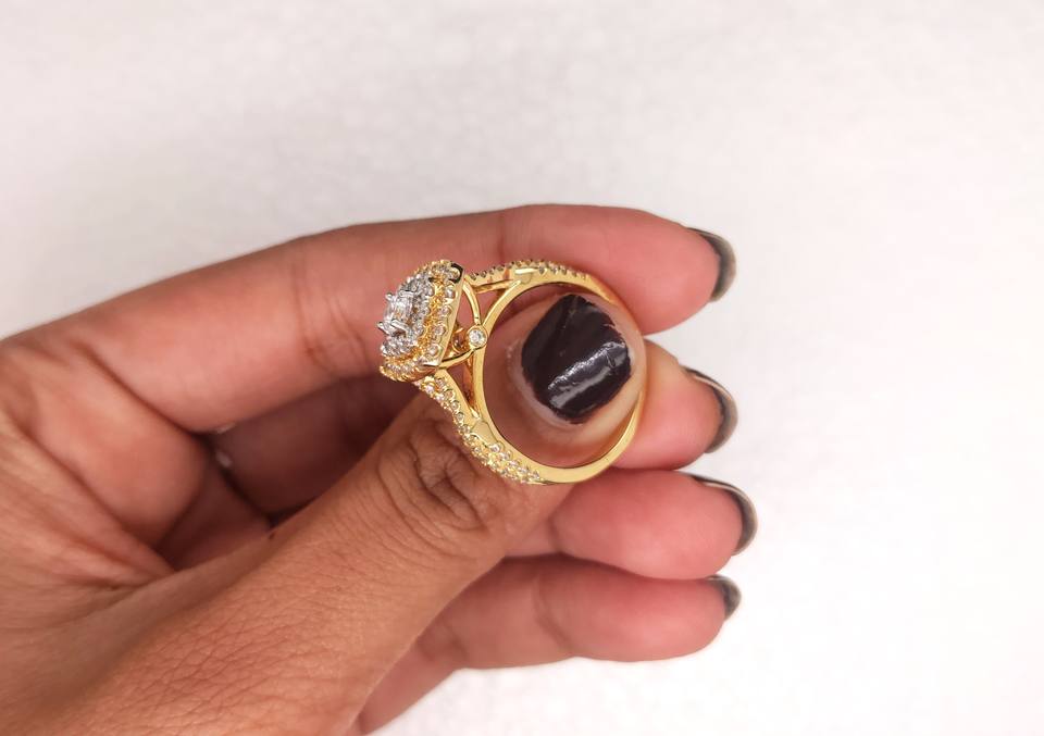 Bague de fiançailles en diamant de laboratoire rond de 1 carat, bague de mariage à double halo en diamant, bague en or jaune massif 14 carats torsadé