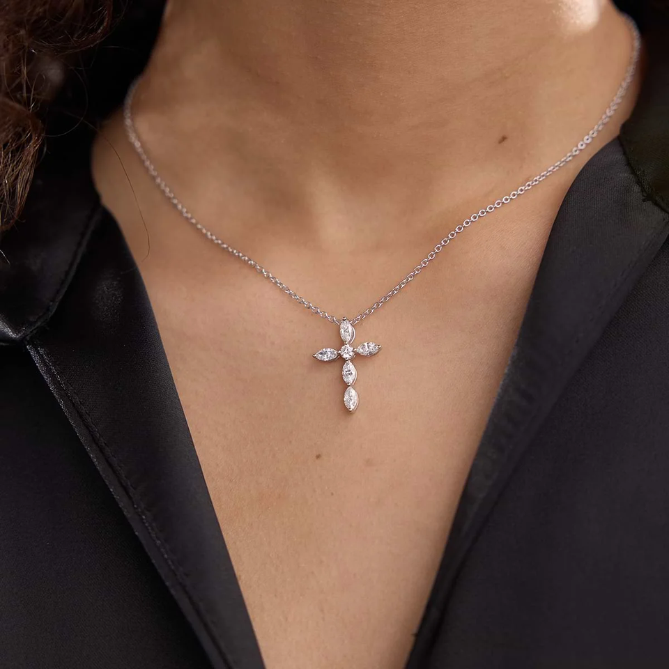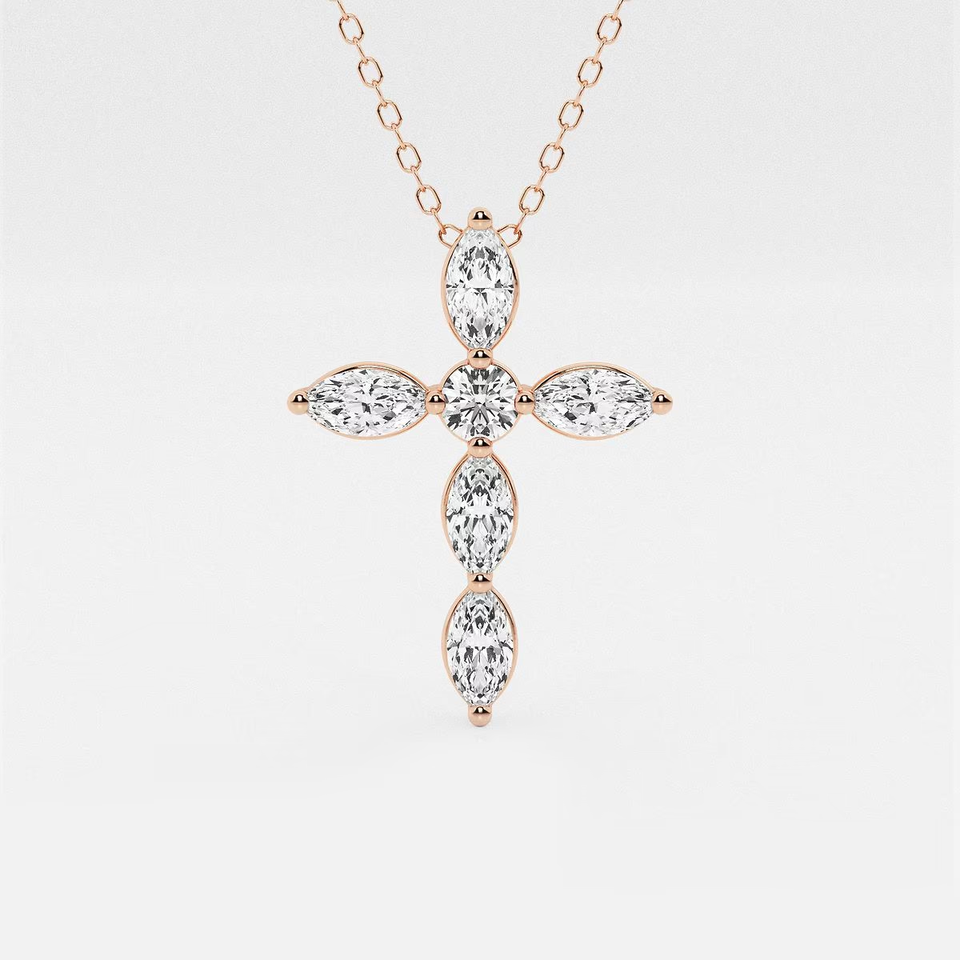 Pendentif croix en diamant de laboratoire taille marquise et rond 1 carat avec chaîne réglable – Bijou élégant et étincelant, cadeau idéal pour femme