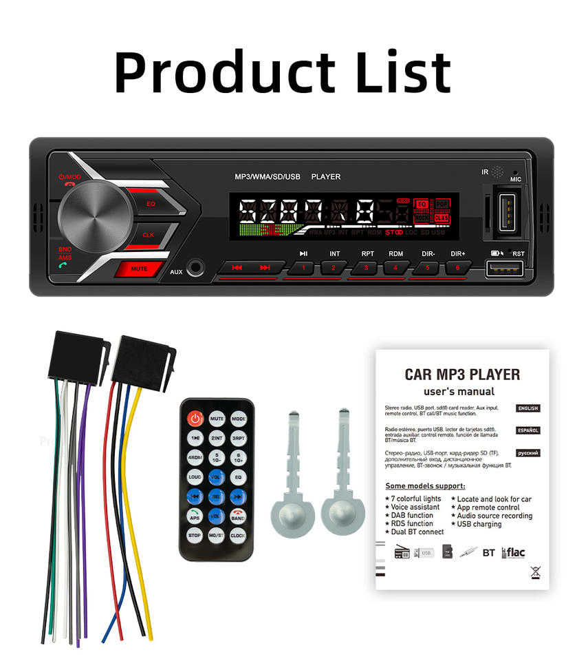 Type de texte:Lecteur MP3 1 DIN pour voiture