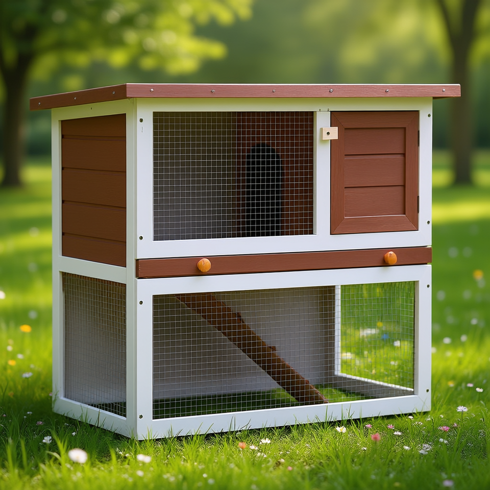 Nichoir à lapins d'extérieur en bois, marron, durable, taille moyenne, style classique, fermeture à poussoir, forme rectangulaire, toutes saisons