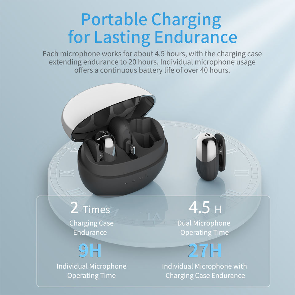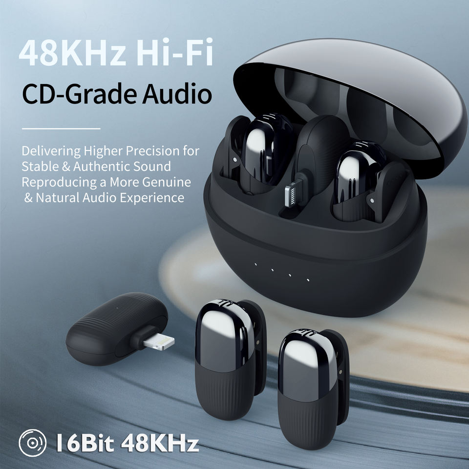 Réduction de bruit, Léger, Portable, Microphone à condensateur, Longue durée de vie de la batterie, Système de microphone pour appareils photo reflex numériques/iPhone/Android