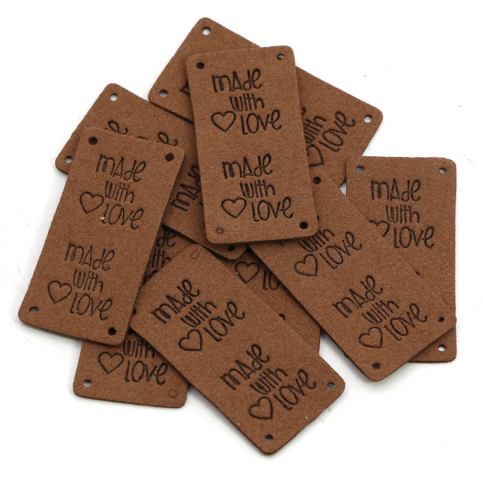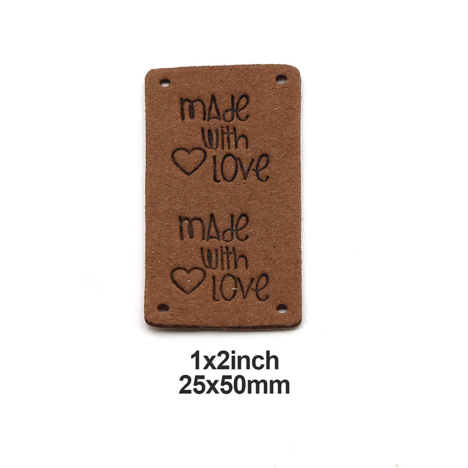 1 pouce * 2 pouces fait à la main avec des étiquettes d'amour étiquettes en cuir gris coeur fait à la main étiquette pour chapeaux manteau robe fournitures de couture bricolage artisanat