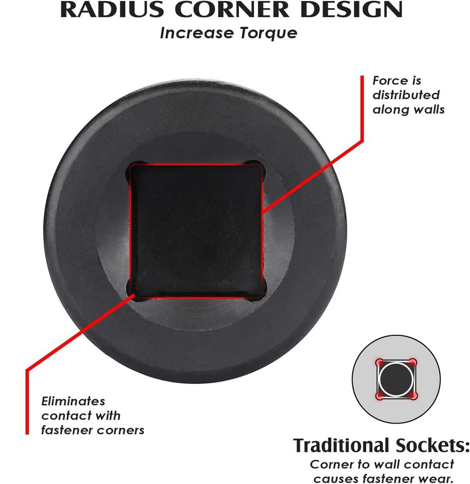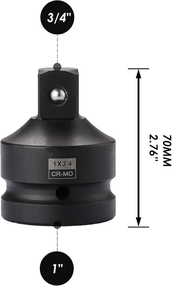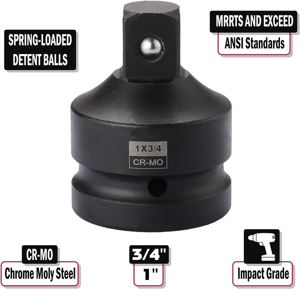 Adaptateur réducteur d'impact 1 pouce (F) vers 3/4 pouce (M) en acier au chrome-molybdène avec butée à bille, extrémité carrée conique Torx OEM