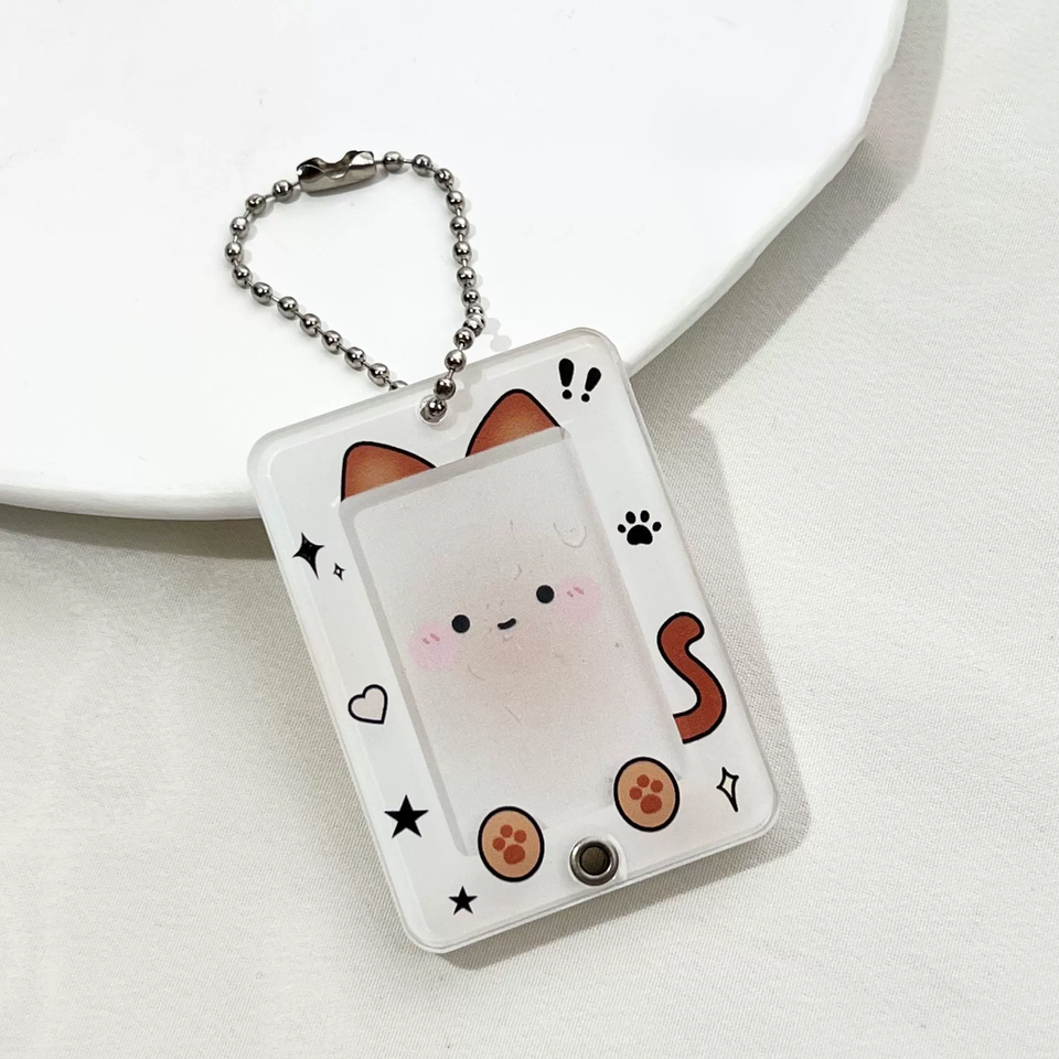 Porte-clés porte-carte photo Kpop de 1 pouce avec cadre de carte photo acrylique animal mignon Mini porte-carte d'identité Porte-clés pour petite carte d'identité