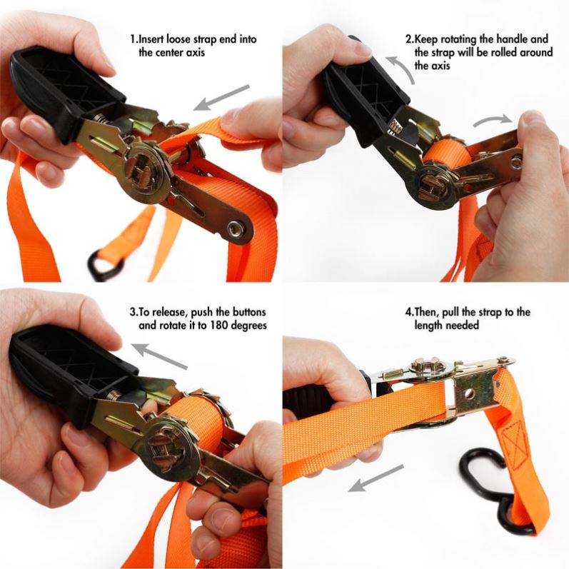 Sangles d'arrimage à cliquet pour benne de camion en polyester orange de 1 pouce avec une résistance à la rupture de 800 kg, longueur de 4 m