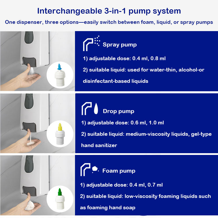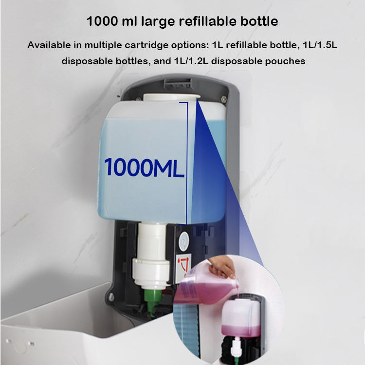 Distributeur de savon liquide, gel ou mousse pour les mains, rechargeable, à dose réglable, 0,4 ml-1,0 ml, pour cartouches jetables de 1 L, 1,2 L, 1,5 L, usage commercial