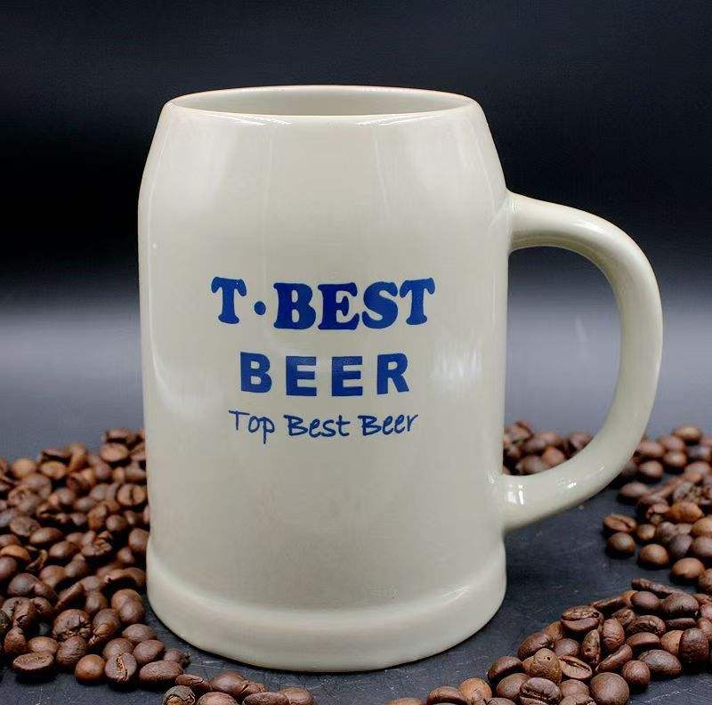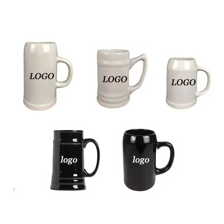 Tasse en céramique de 1 litre Cadeau personnalisé Tasses en céramique de 20 oz avec poignée Grande capacité Tasses à café et à bière en céramique allemande noire et blanche